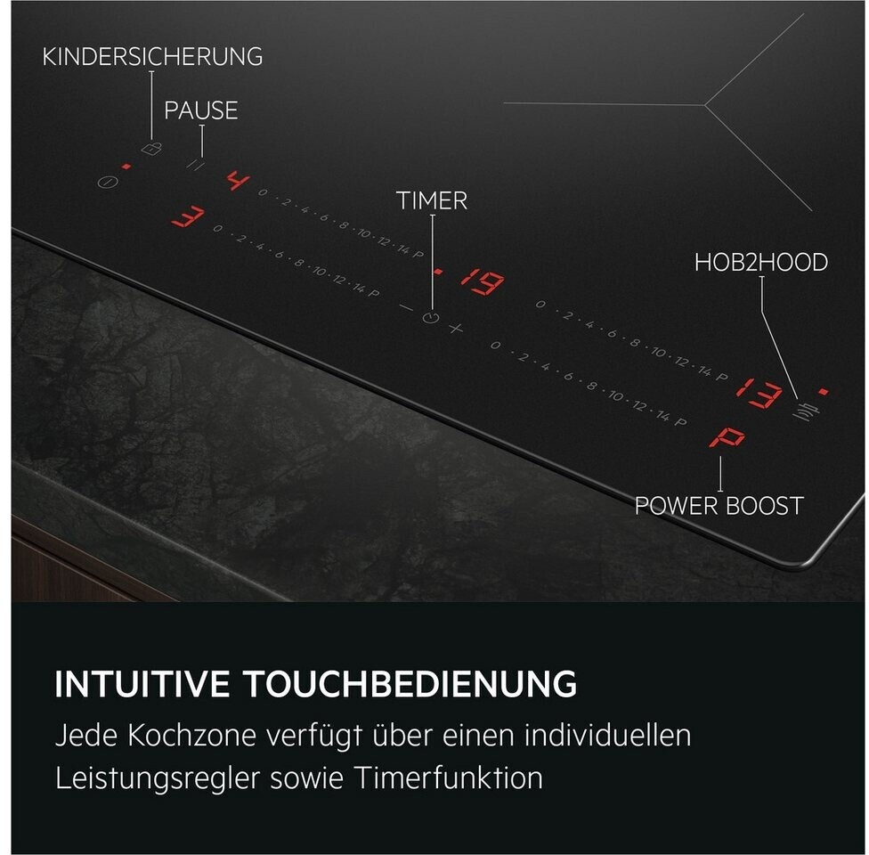 | Bedienung | DirectControl (Einzelslider pro Kochzone) |