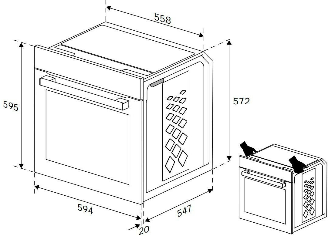 | Maße (Backofen) | 59,5 x 59,4 x 56,7 cm (H x B x T) |