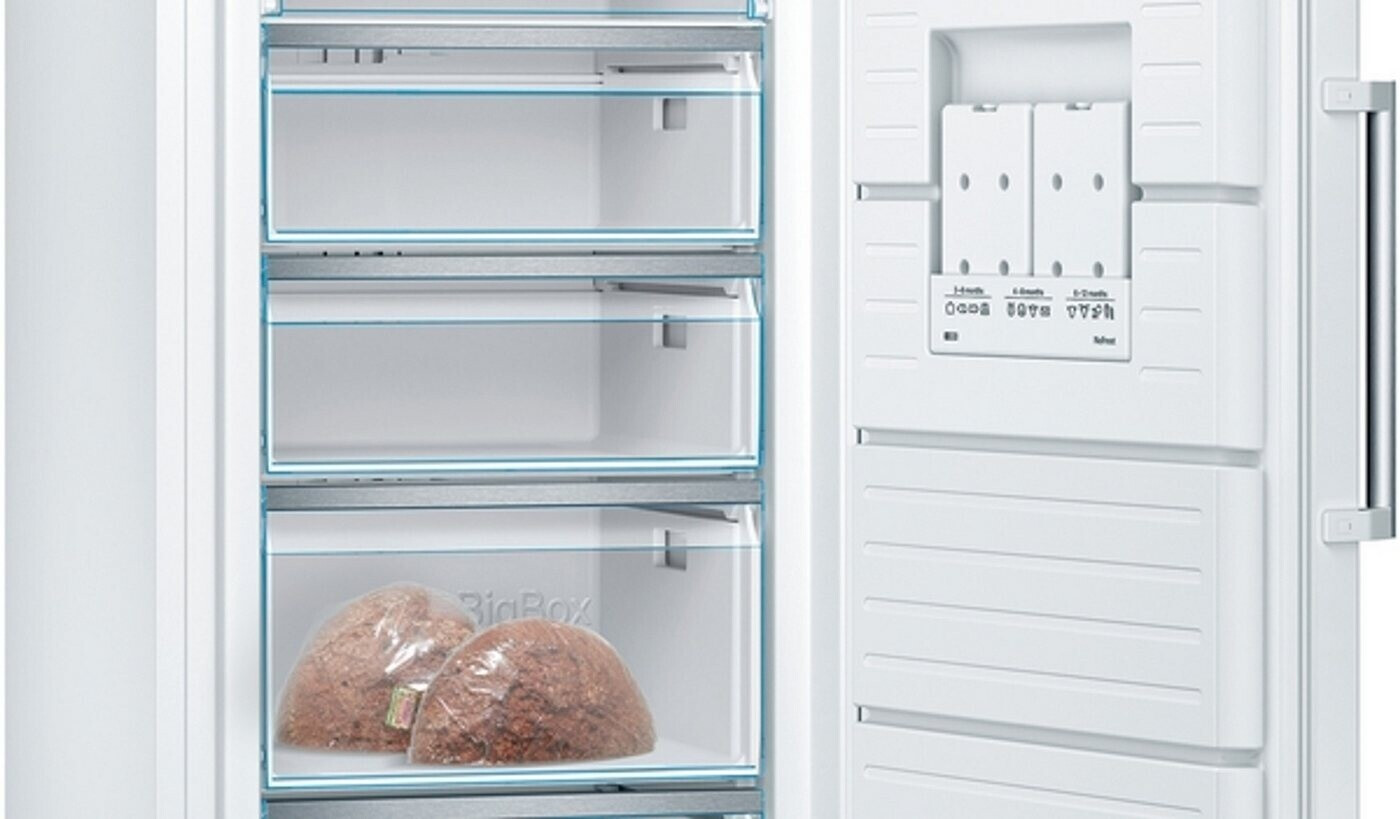 Eigenschaften "Bosch GSN58DWDV Serie 6, Gefrierschrank, 191 x 70 cm, 366 L, noFrost, Big Box-Schublade für Gefriergut, freistehend"