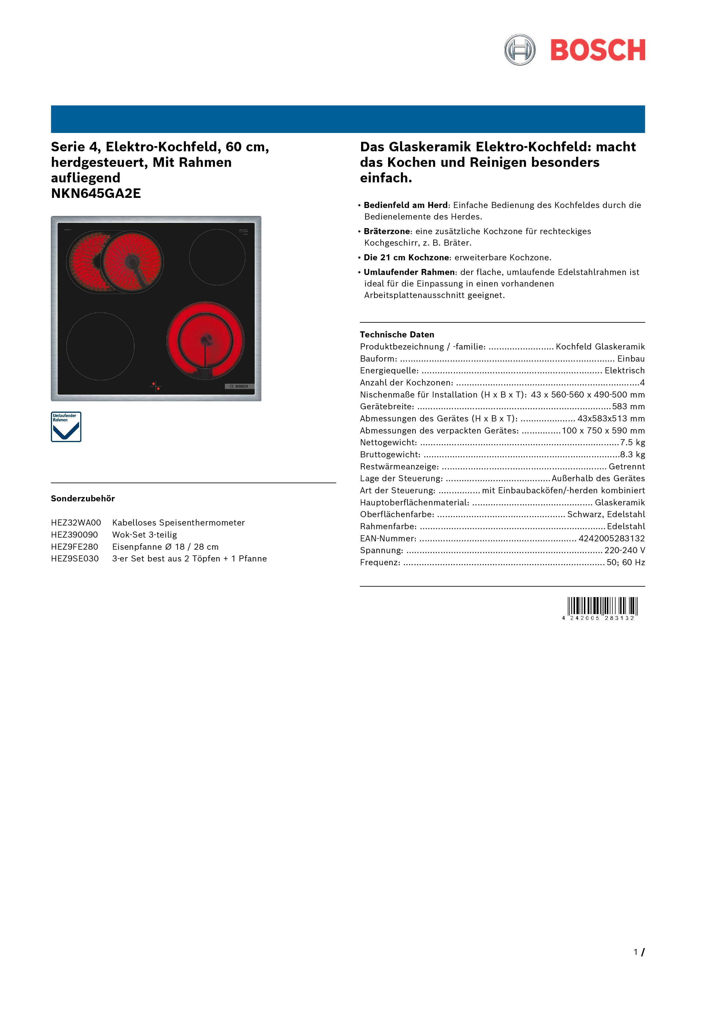 Eigenschaften "Bosch HND411LR63 (HEA513BR3 + NKN645GA2E) Einbau-Herd-Set "