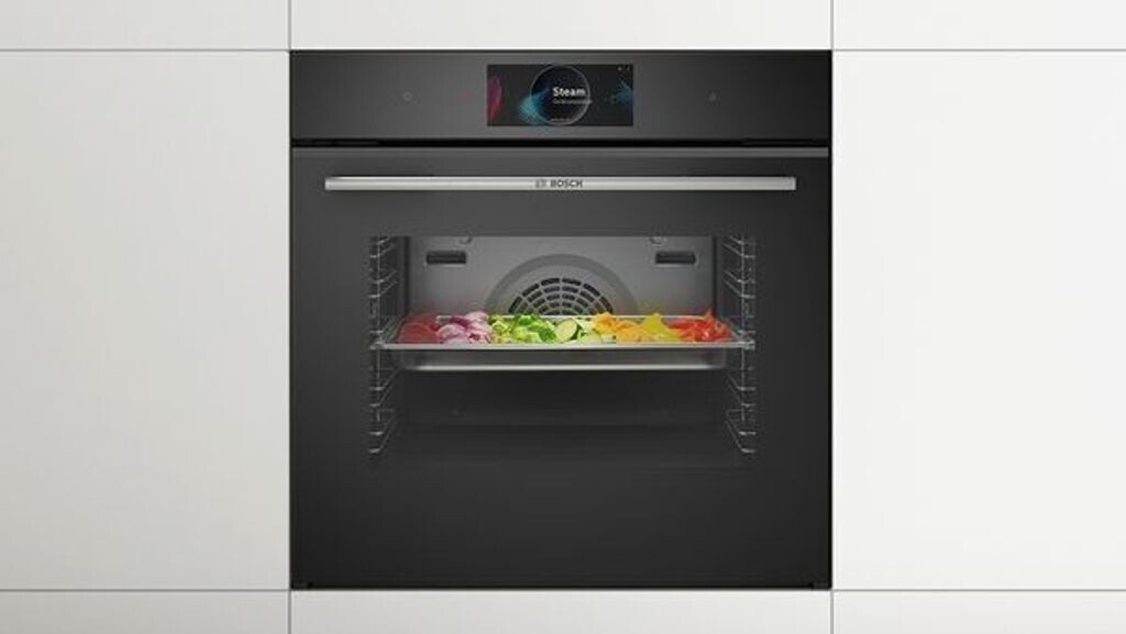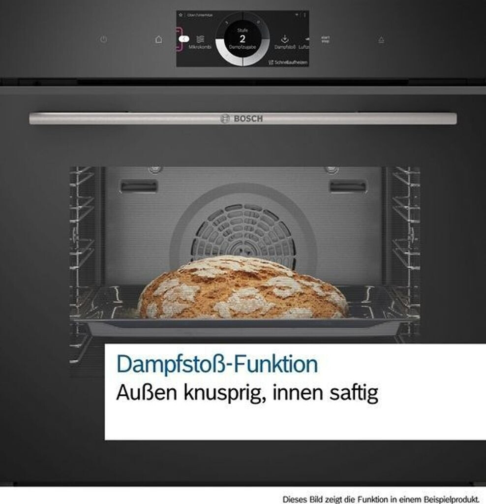 Der Bosch HRG7764B1 ist das Flaggschiff der Serie 8 und besticht durch sein minimalistisches Carbon Black Design ohne physische Knöpfe. Die Steuerung erfolgt über den innovativen digitalen Bedienring, der direkt in das hochauflösende TFT-Touchdisplay graviert ist. Das Highlight für Hobbyköche ist die Added Steam Funktion: Durch die gezielte Zugabe von Wasserdampf gelingen Brote außen krusprig und innen fluffig, während Braten saftig bleiben. Dank der Steam Function Plus garen Lebensmittel bei bis zu 120°C deutlich schneller und vitaminschonender.