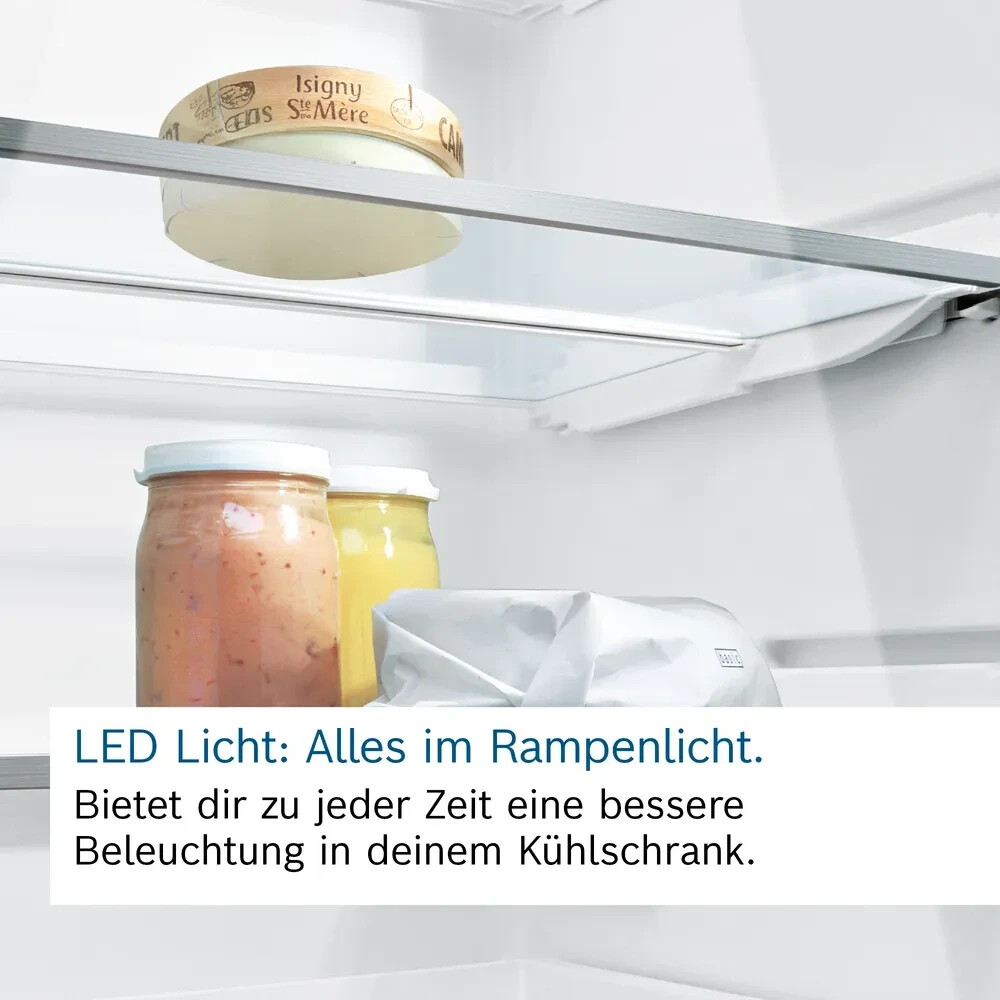| Innenraum-Ausstattung | 0-Grad-Zone, Abstellflächen, Eiswürfelschale, Flaschenablage, Geruchsfilter, Eierablage, Gefrierfach, Innenraumbeleuchtung |