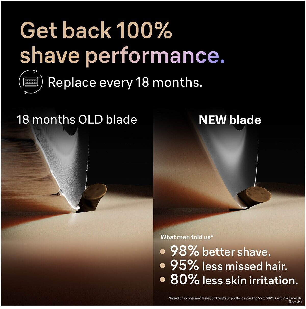 - Holen Sie sich 100% Rasierleistung zurück: Für eine optimale Rasur empfehlen wir, den Scherkopf alle 18 Monate auszutauschen