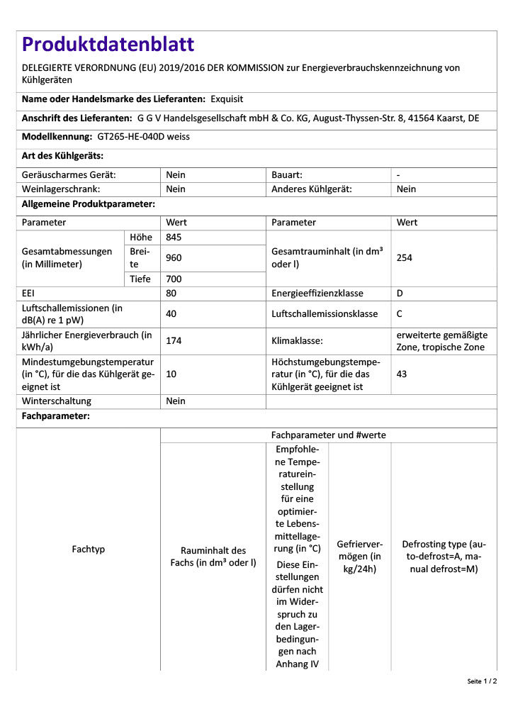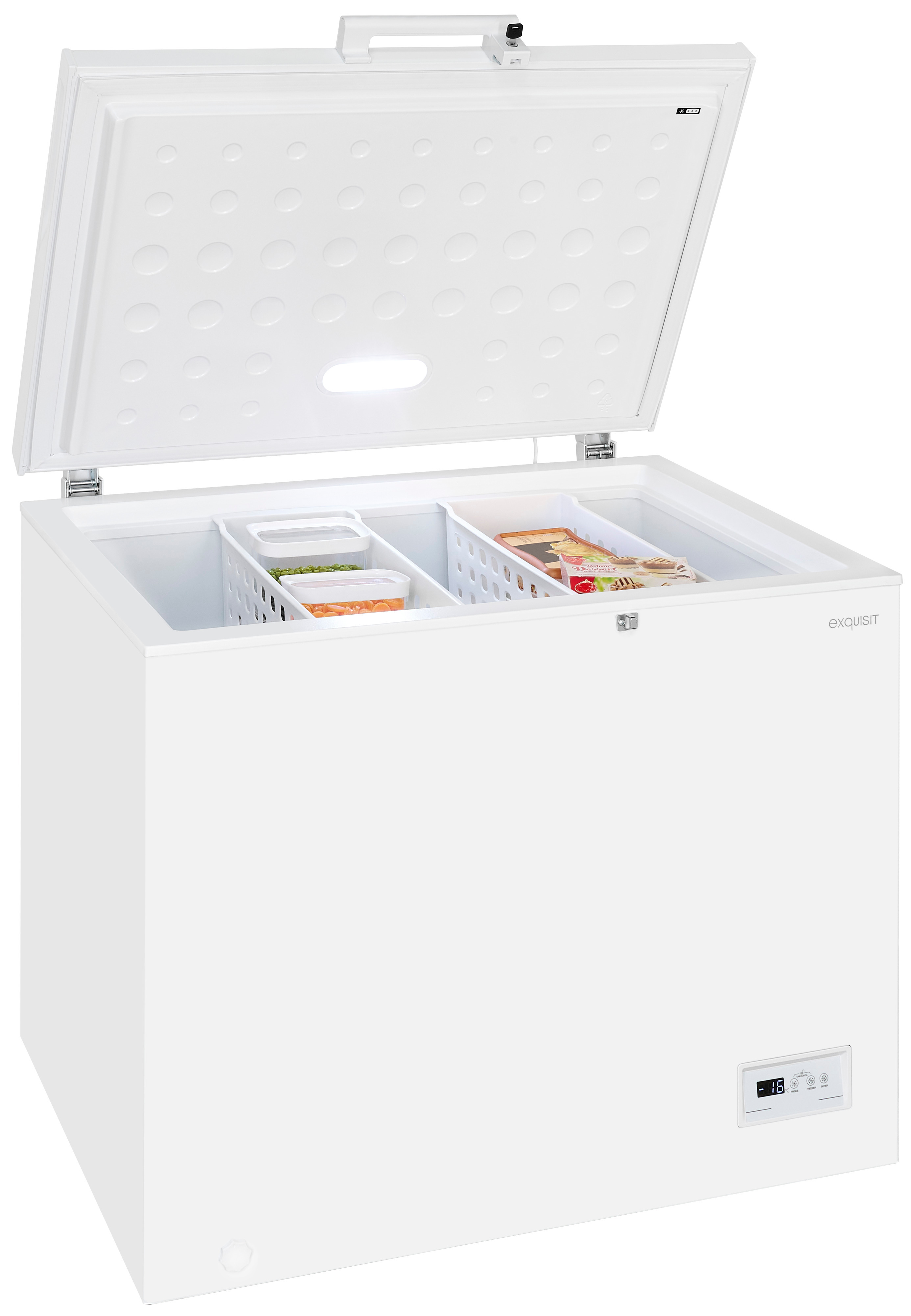 Eigenschaften "Exquisit GT265-HE-040D Gefriertruhe 254L, 4 Sterne, Schnellgefrieren, Kindersicherung, Energieeffizienz D, weiß"