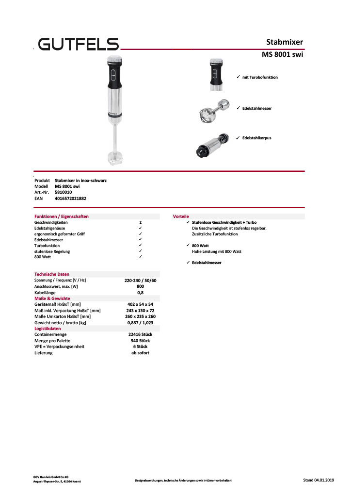stufenlose Geschwindigkeitsregelung, Rühren, Pürieren, Mixen, Turbo |