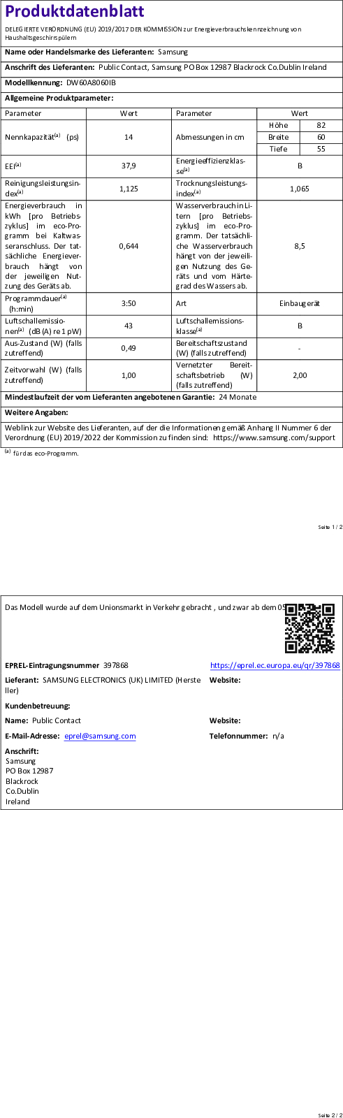 0,87 kWh,Glaskeramik, 60 Liter, Grill, Auftauen, Ober-/Unterhitze, Umluft, Oberhitze, Unterhitze