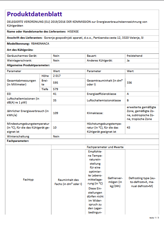 141 kWh/Jahr, 39 dB(A), 251 Liter, No-Frost, LED