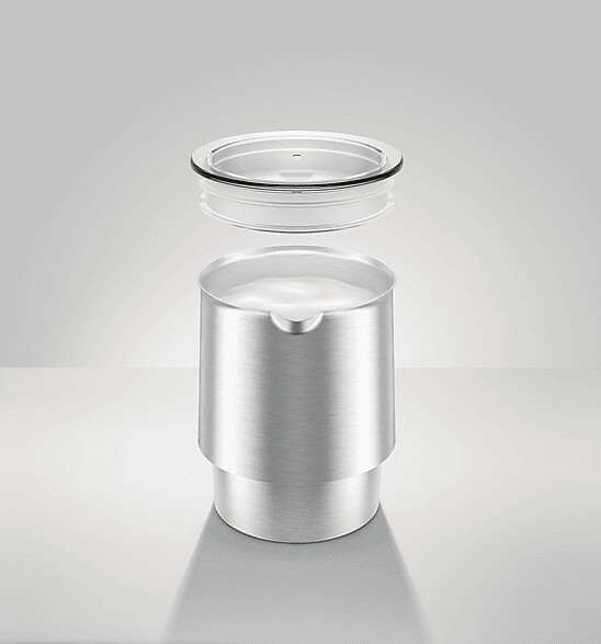 Mit einem Durchmesser von 13 cm und einer Höhe von 21 cm präsentiert sich der Milchschäumer Hot & Cold platzsparend und kompakt. Er fügt sich harmonisch in jede Kücheneinrichtung ein und ergänzt Pure-Coffee-Vollautomaten von JURA stilvoll. Dank pflegeleichter Materialien wie Edelstahl und der abgerundeten Formen lässt sich der Behälter einfach reinigen.