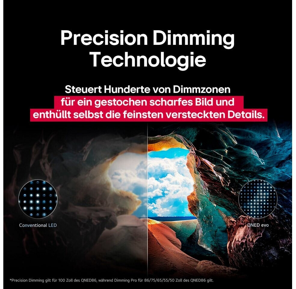 | Displaytechnologie | 4K QNED evo (Quantum Dot & NanoCell) mit MiniLED |