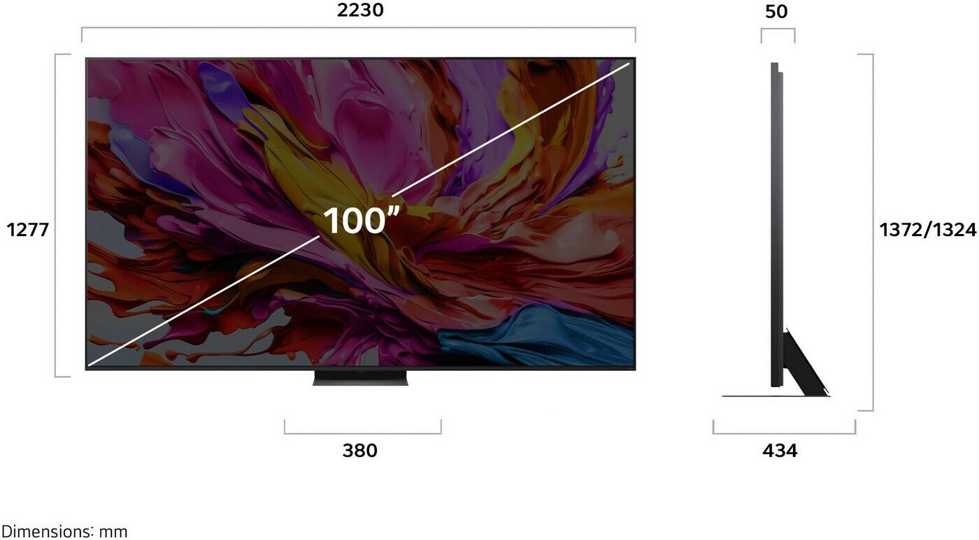 Der LG 100QNED86A6 ist kein gewöhnlicher Fernseher – er ist ein Statement. Mit einer beeindruckenden Bildfläche von über 2,5 Metern Diagonale kombiniert er die QNED evo Technologie (Quantum Dot plus NanoCell) mit einer präzisen MiniLED-Hintergrundbeleuchtung. Das Ergebnis sind extrem helle Bilder und tiefes Schwarz, das fast an OLED-Niveau heranreicht. Der neue alpha 8 AI Prozessor wurde speziell optimiert, um solch riesige Flächen mit KI-gestütztem Upscaling und Dynamic Tone Mapping perfekt auszuleuchten und Details messerscharf darzustellen.