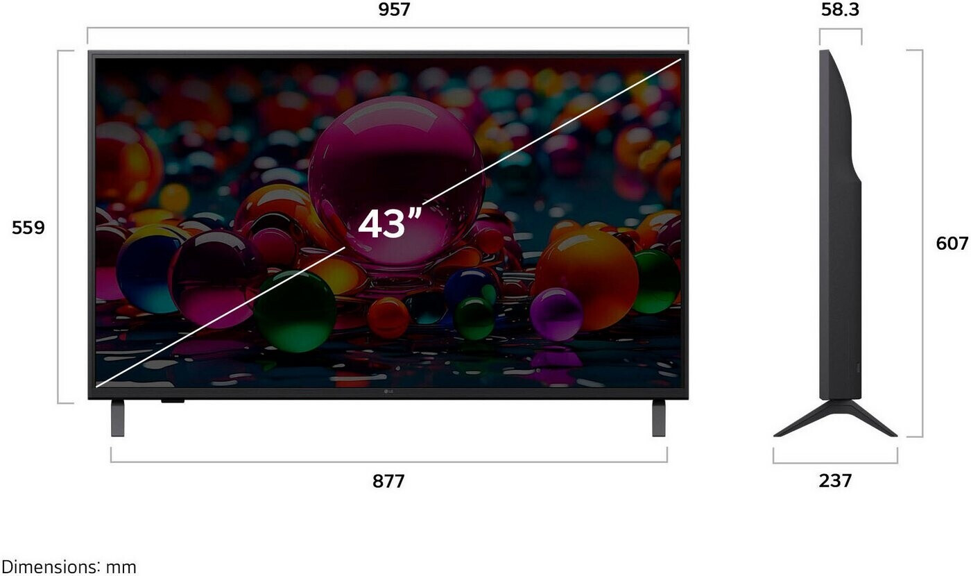 Der LG 43UA75006LA ist das High-End-Modell unter den kompakten 4K-Fernsehern. Er kombiniert die modernste Prozessor-Technologie von 2025 mit einem platzsparenden Design. Wer keine Kompromisse bei der Bildverarbeitung und den Smart-TV-Funktionen eingehen möchte, nur weil der Platz für einen 55-Zöller fehlt, findet hier die perfekte Lösung. Er ist zukunftssicher, reaktionsschnell und bietet ein beeindruckendes Preis-Leistungs-Verhältnis für anspruchsvolle Nutzer mit begrenztem Stellplatz.
