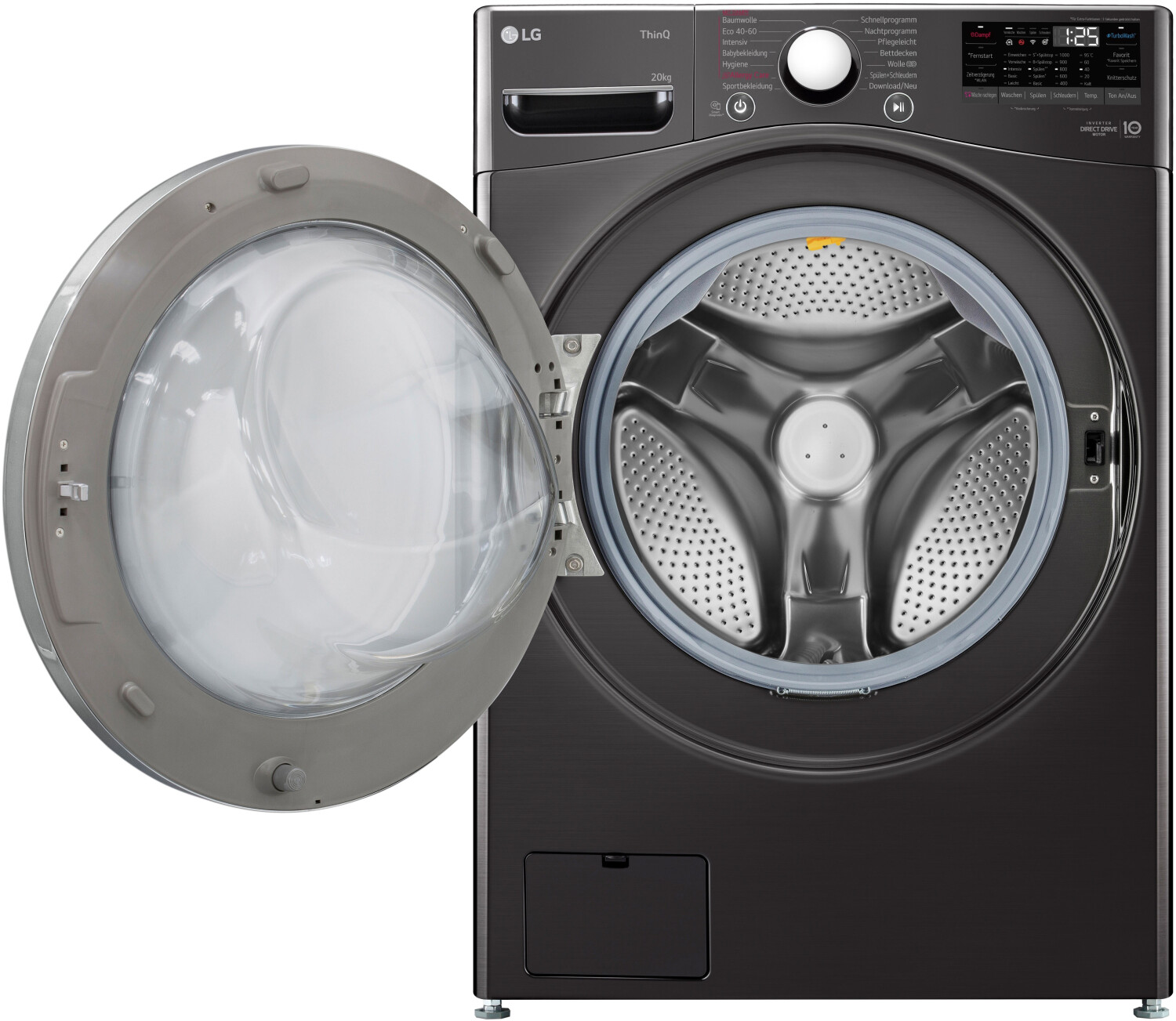 Für Zeitersparnis sorgt die TurboWash 360° Funktion, die eine vollständige Reinigung in nur 39 Minuten ermöglicht (bei halber Beladung), indem sie Wasser über vier Einsprühdüsen direkt auf die Textilien sprüht. Zudem bietet die Steam-Technologie eine hygienische Reinigung, die Allergene und Bakterien effektiv eliminiert und gleichzeitig das Bügeln erleichtert. Über die LG ThinQ-App lässt sich die Maschine bequem per Smartphone steuern, neue Waschprogramme herunterladen oder Diagnosen durchführen.