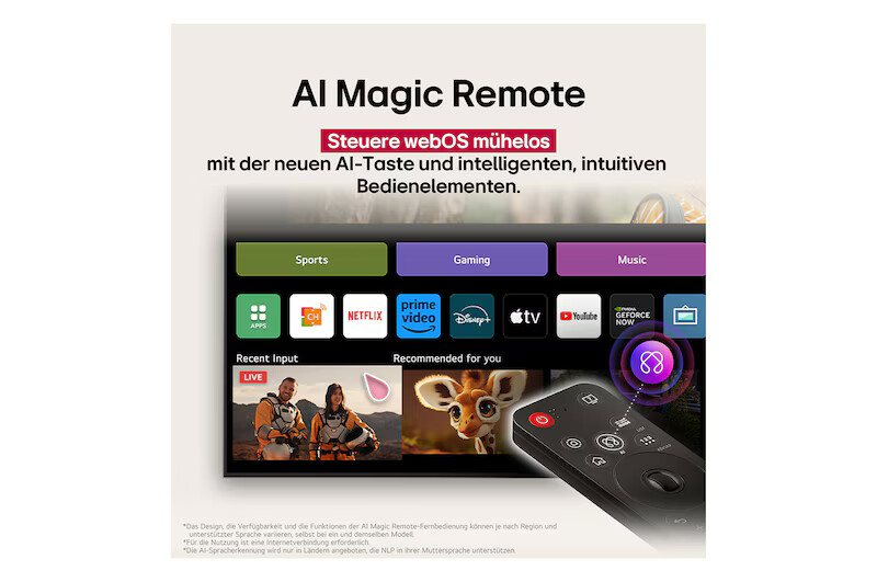 | Bild-Besonderheiten | AI Picture Pro, OLED Dynamic Tone Mapping Pro, AI Super Upscaling 4K, AI Brightness Control, Brightness Booster, Pixel Dimming, OLED Motion |