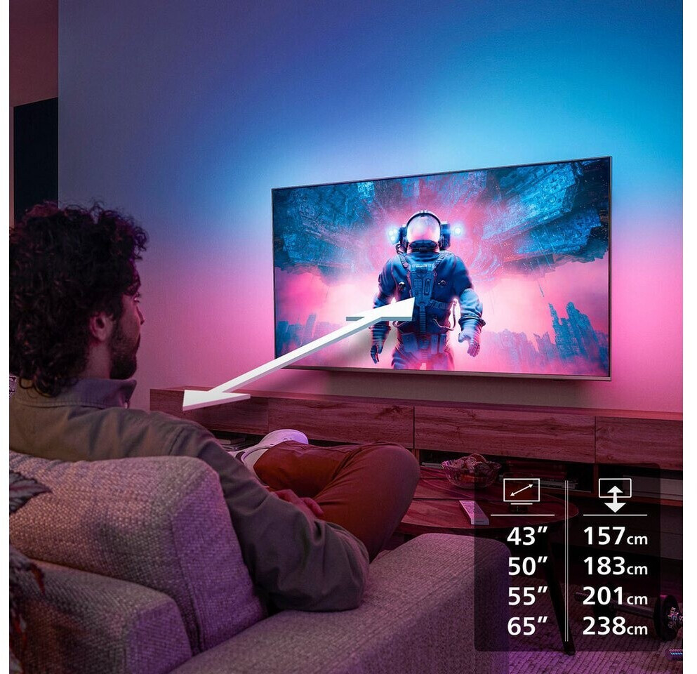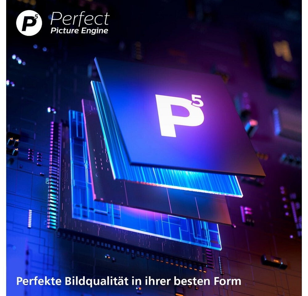 Der Philips 50PUS9000 aus der 2025er-Generation vereint das Beste aus der Mittelklasse. Durch das neue QLED-Display wirken Farben satter und realistischer als bei herkömmlichen LED-TVs. Das unverkennbare Highlight bleibt jedoch das 3-seitige Ambilight: Die LEDs auf der Rückseite projizieren die Farben des Bildschirms in Echtzeit an die Wand, was das Bild optisch vergrößert und die Augen bei Dunkelheit schont. Im Inneren sorgt die bewährte P5 Engine dafür, dass auch Inhalte mit geringerer Auflösung scharf und flüssig dargestellt werden.