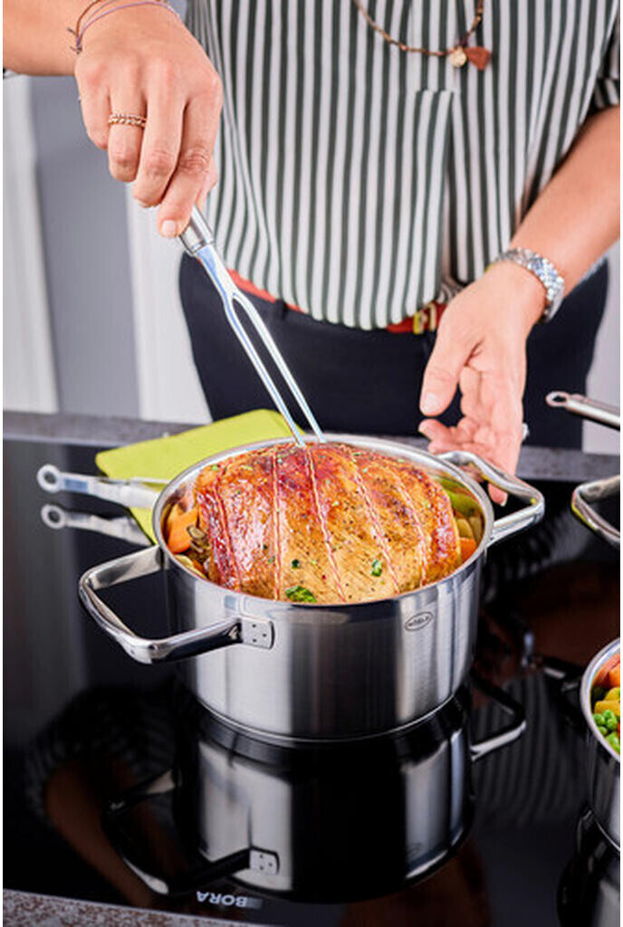 - Mit dem hochwertigen RÖSLE Rundgriff liegt die Vorlegegabel stets gut in der Hand - lässt sich durch die praktische Aufhängeöse an Küchenleisten platzsparend aufbewahren