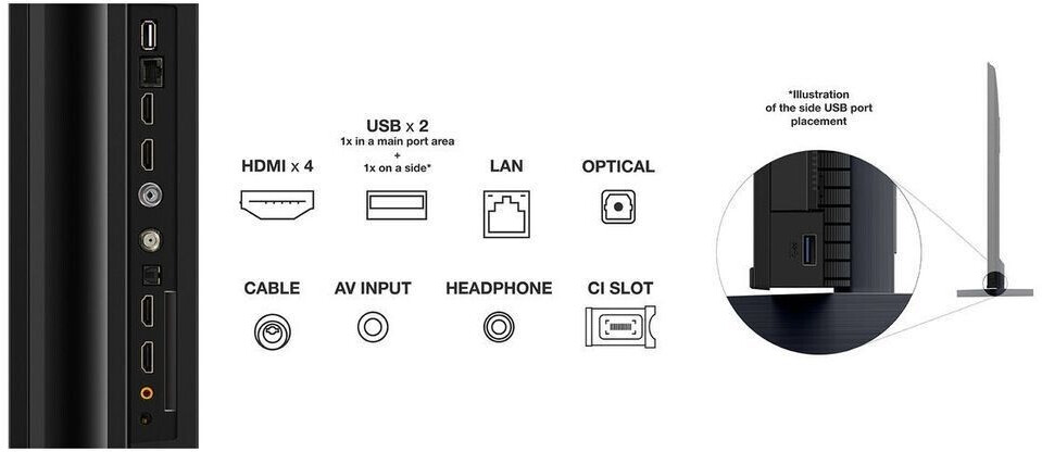 | Digital Tuner | Antenne (DVB-T2), Kabel (DVB-C), Satellit HD (DVB-S2 HD), Single-Tuner |