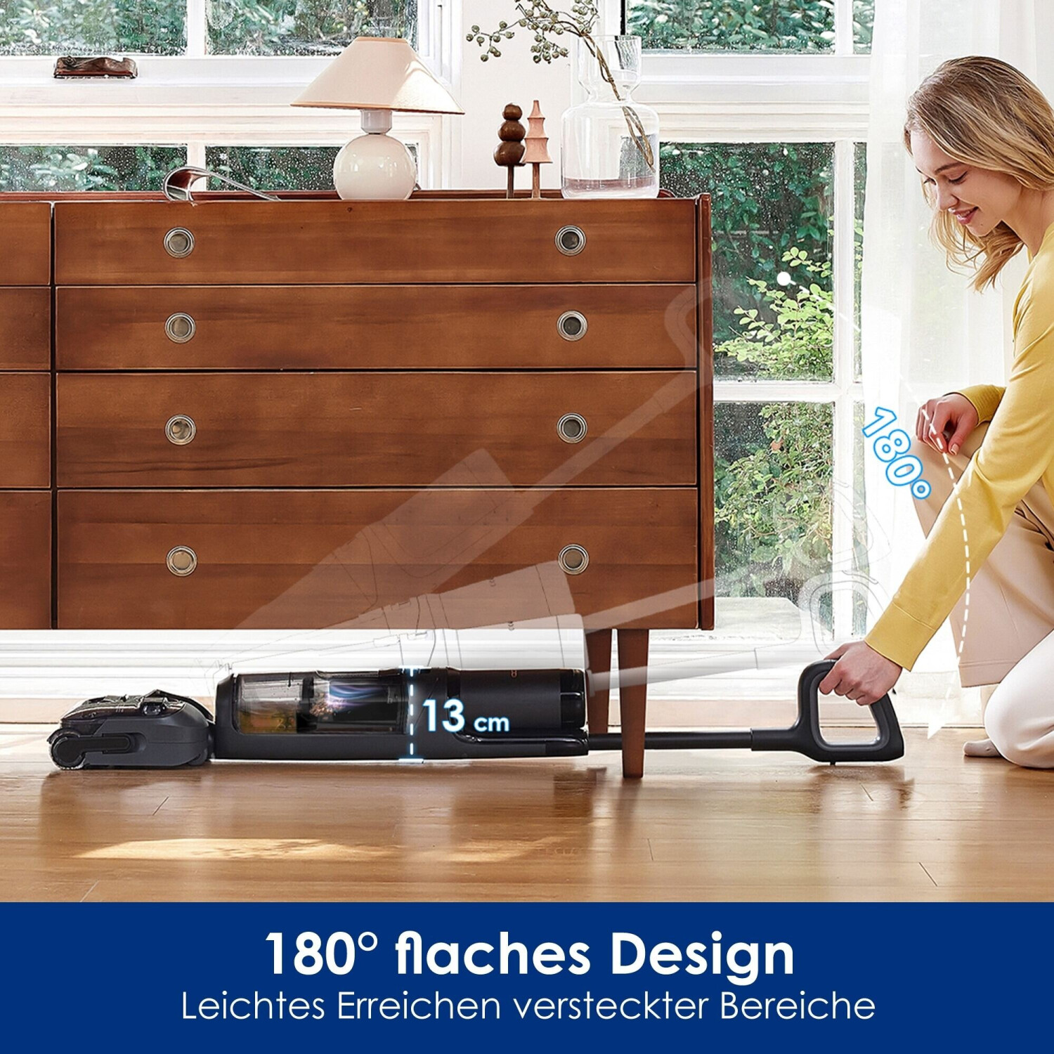 Der Tineco FLOOR ONE S6 Stretch Extreme löst das größte Problem herkömmlicher Wischsauger: Er lässt sich dank eines speziellen Wasser-Gas-Trennungssystems komplett 180° flach auf den Boden legen. Damit erreichen Sie Schmutz unter Betten, Sofas und Schränken ab einer Höhe von nur 13 cm, ohne dass Schmutzwasser in den Motor läuft. Das Extreme-Paket zeichnet sich zudem durch ein erweitertes Zubehörset aus, das besonders für Haushalte mit hoher Reinigungsfrequenz ideal ist.