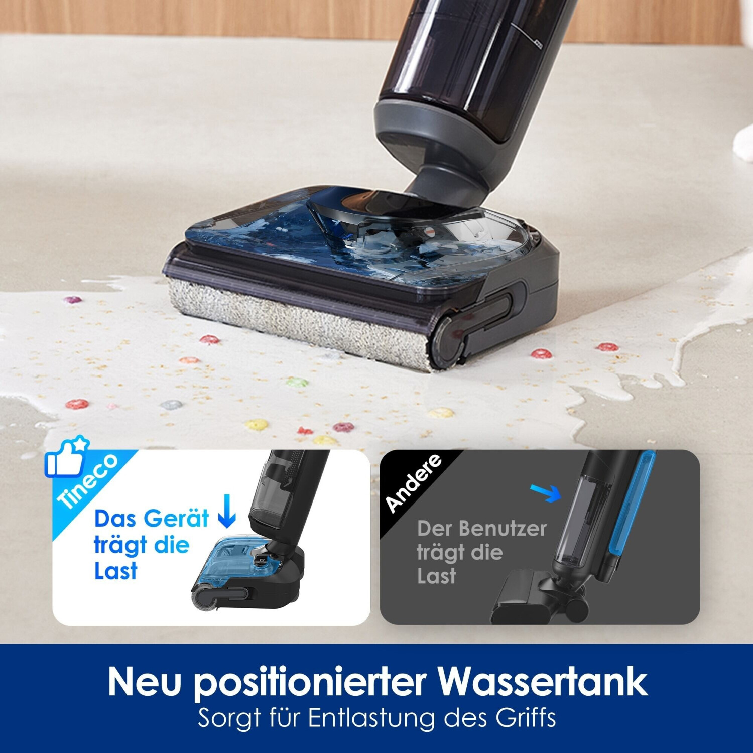 Wie von Tineco gewohnt, erkennt der iLoop-Sensor den Grad der Verschmutzung automatisch und reguliert die Wasserabgabe sowie die Saugkraft in Echtzeit. Die Bürste wird während des Betriebs permanent mit frischem Wasser gespült (MHCBS-Technologie), sodass Sie nie mit einer schmutzigen Walze wischen. Nach der Arbeit sorgt das FlashDry-System dafür, dass die Walze in nur 5 Minuten mit heißer Luft getrocknet wird, was Bakterienbildung und Gerüche zuverlässig verhindert.