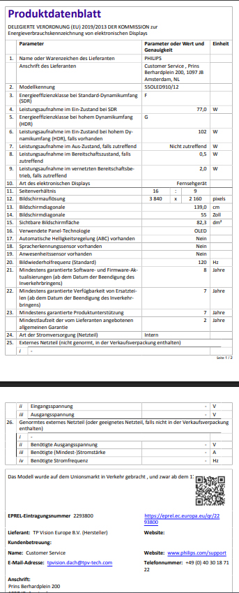 Gerätedaten im ÜberblickModellPhilips 55OLED760/12Bildschirmdiagonale55 Zoll (139 cm)DisplaytechnologieOLED (Organische LEDs für perfektes Schwarz)BildprozessorP5 AI Perfect Picture EngineAmbilight3-seitig (integriertes Umgebungslicht)HDR-FormateDolby Vision, HDR10+, HLGBildwiederholrate120 Hz nativSmart TVAndroid TV 10 (Q)AudioDolby Atmos, 2.1 Kanal (50W RMS)Anschlüsse4x HDMI (inkl. HDMI 2.1 mit VRR & ALLM), 3x USBDesignRahmenloses Design mit MetallstandfüßenBeschreibung & BildqualitätDer Philips 55OLED760 kombiniert die überragenden Kontrastwerte der OLED-Technologie mit der intelligenten P5 AI Perfect Picture Engine. Da jeder Pixel einzeln leuchten oder komplett ausgeschaltet werden kann, bietet dieses Modell perfektes Schwarz und eine beeindruckende Farbtiefe. Die künstliche Intelligenz des Prozessors analysiert das Bild in Echtzeit, um Schärfe, Bewegung und Farben so natürlich wie möglich darzustellen. Ein absolutes Alleinstellungsmerkmal ist das 3-seitige Ambilight: LEDs an der Rückseite des Fernsehers projizieren die Farben des Bildschirms an die Wand hinter dem Gerät, was das Display größer wirken lässt und die Augen schont.Auch für Gaming-Enthusiasten ist der Fernseher bestens gerüstet. Dank HDMI 2.1 Unterstützung mit VRR (Variable Refresh Rate) und ALLM (Auto Low Latency Mode) bietet er flüssige Gameplay-Erlebnisse mit extrem geringen Verzögerungszeiten. Das integrierte Android TV bietet zudem Zugriff auf alle gängigen Streaming-Dienste wie Netflix, Disney+ und Prime Video, während die Sprachsteuerung via Google Assistant die Bedienung erheblich vereinfacht.FazitDer Philips 55OLED760 ist ein exzellenter Allrounder für Heimkino-Fans und Gamer gleichermaßen. Er bietet das typische cineastische OLED-Erlebnis, ergänzt um die einzigartige Ambilight-Atmosphäre, die kein anderer Hersteller bietet. Mit der Unterstützung aller wichtigen HDR-Formate inklusive Dolby Vision ist er zukunftssicher aufgestellt. Wer Wert auf ein immersives Erlebnis, smarte Funktionen und ein elegantes, schlankes Design legt, findet in diesem Modell ein hervorragendes Preis-Leistungs-Verhältnis in der OLED-Mittelklasse.
