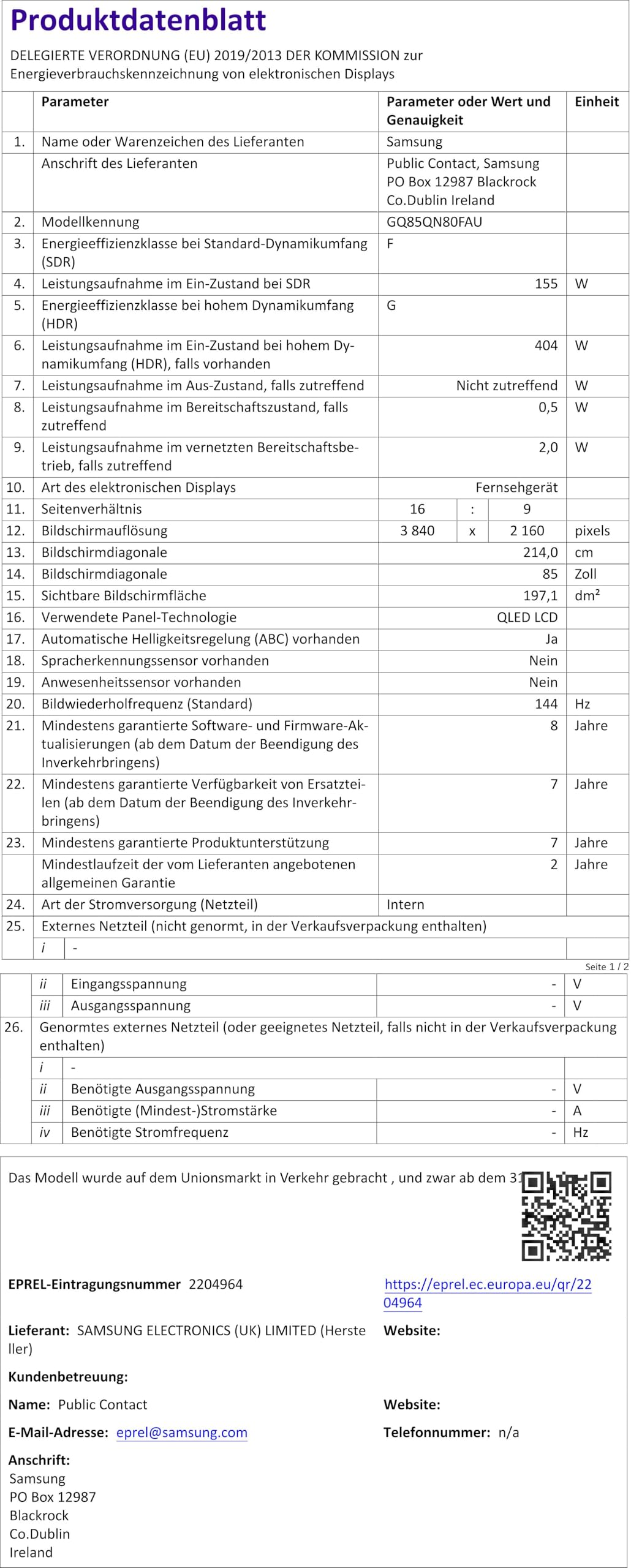 HDMI-CEC, HDMI-ARC (Audio Return Channel), Spielemodus,