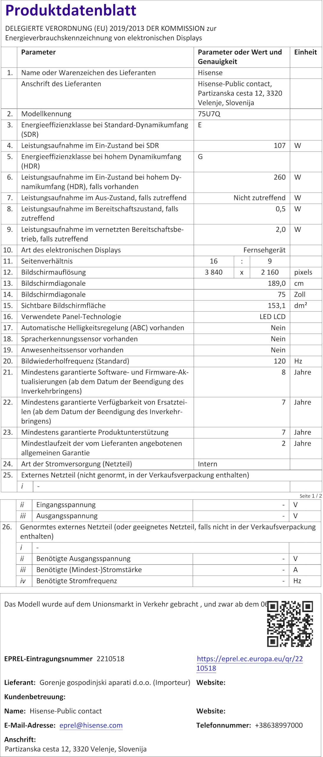 Hisense Ausstellungsstück 75U7Q Fernseher 75 Zoll, 4K Mini LED ULED, Smart TV